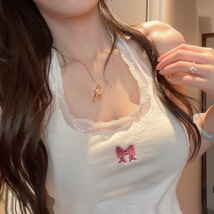 大码胖mm纯欲甜辣风短款刺绣小吊带背心女装夏季内...