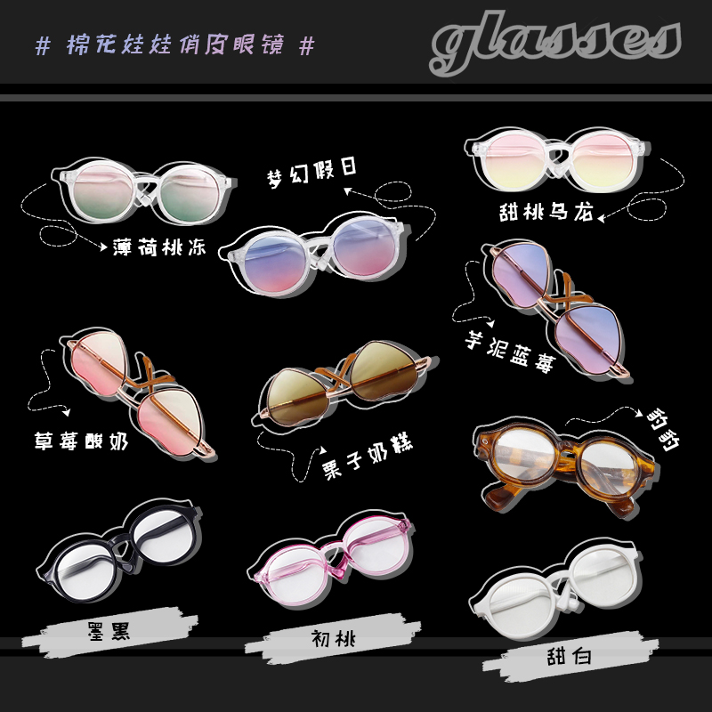 芒桃苏苏 墨镜眼镜 20cm棉花娃娃 配饰 夏日海滩墨镜