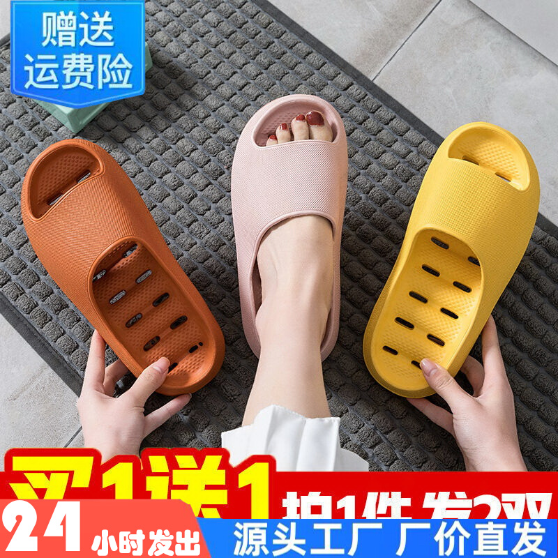 两双居家拖鞋漏水浴室拖鞋女夏居家防滑软底速干厚...