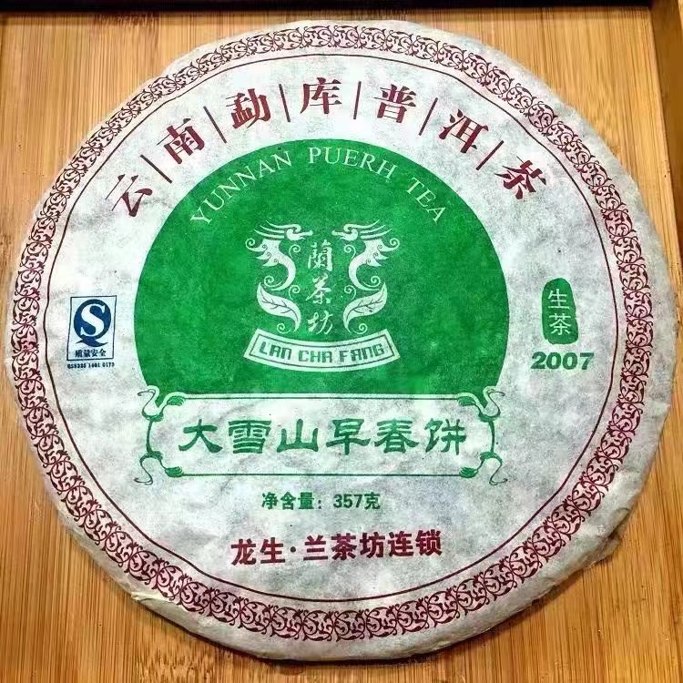 龙生普洱茶2007年大雪山早春饼357g生茶乔木饼昆明干仓