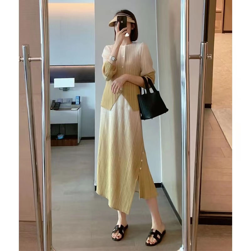 三宅褶皱渐变色套装女高级感洋气2022年新款短外套...