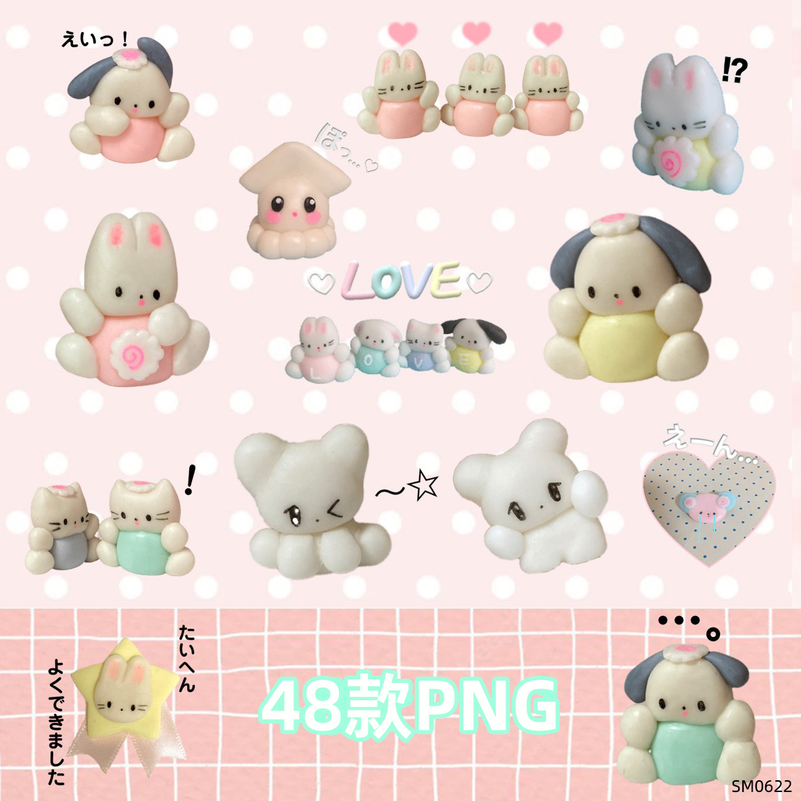 静态48款粘土娃娃可爱兔子猫咪狗狗 line表情包电子...