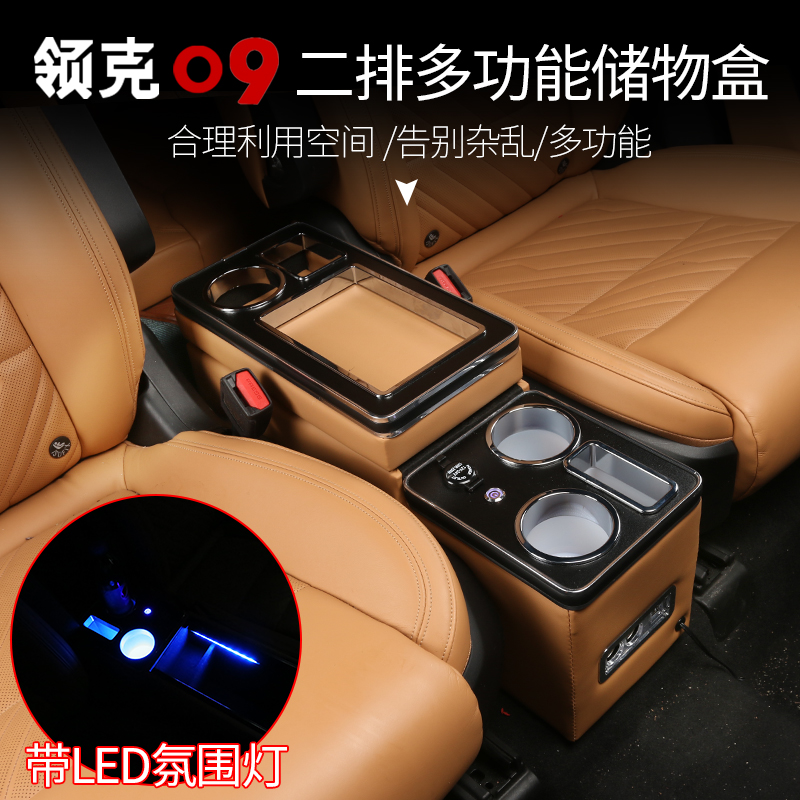 适用于领克09后排扶手储物箱改装二排中央车载水杯...