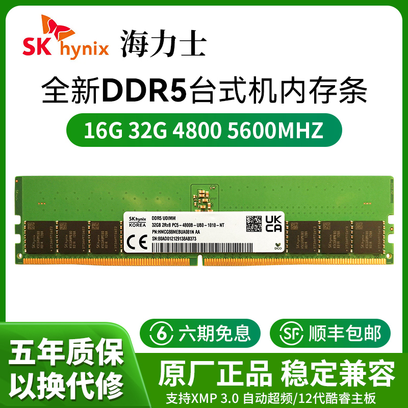 原厂海力士台式机内存条DDR5 4800 5600不锁电压16G...