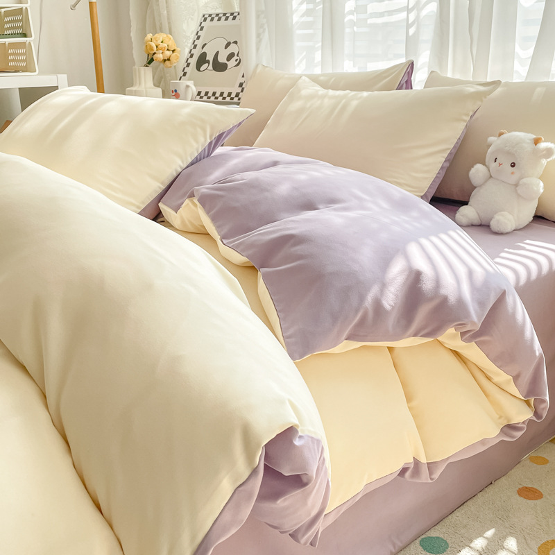 ins冬纯棉水洗棉四件套亲肤纯色被套床上用品床单学...