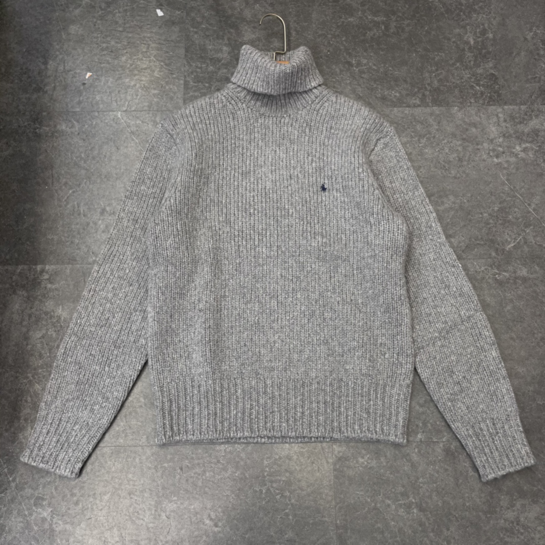 小马刺绣标 纯羊毛可翻高领臻领针织毛衣灰色纯色套...