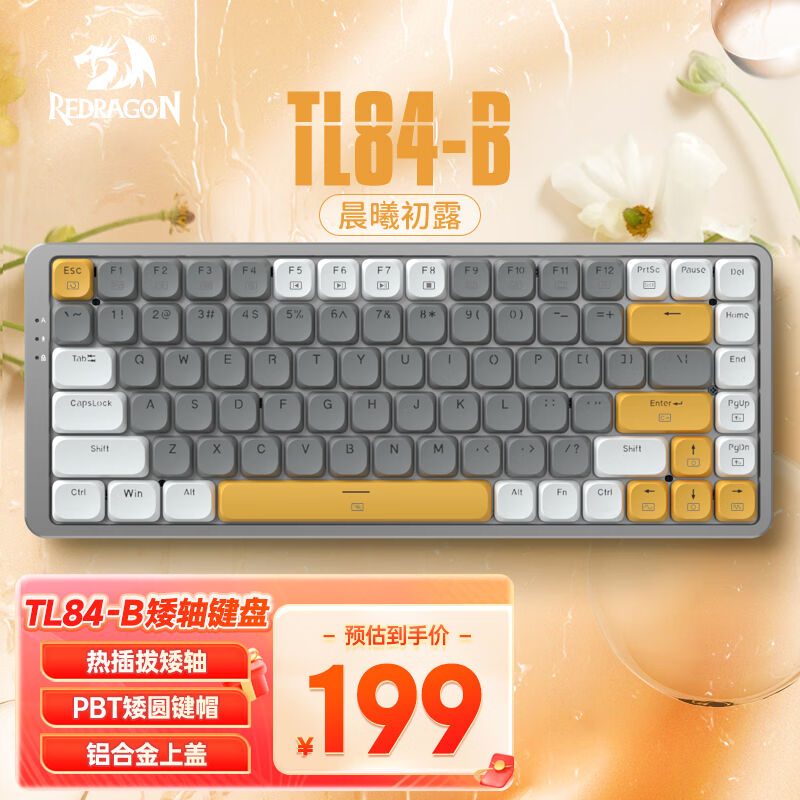 红龙(REDRAGON)TL84矮轴机械键盘蓝牙无线有线三...