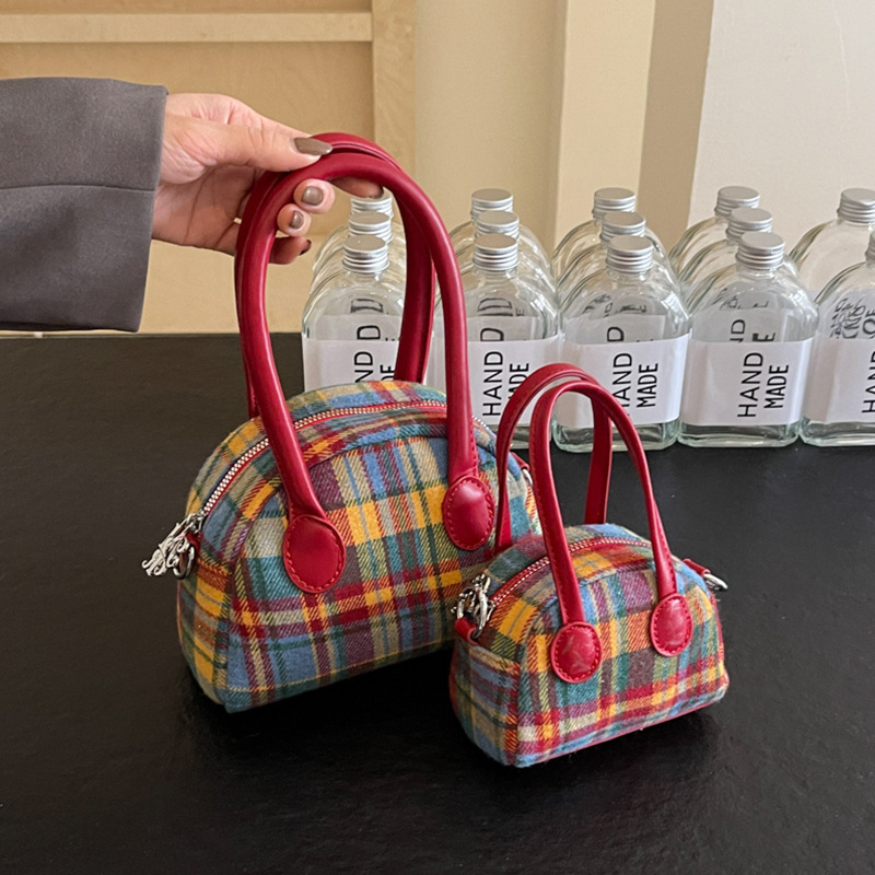 儿童包春季新款韩国格子毛呢手提包小众撞色迷你贝...