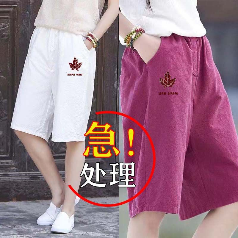 清仓捡漏~棉麻五分中裤女夏宽松大码直筒休闲6分薄...