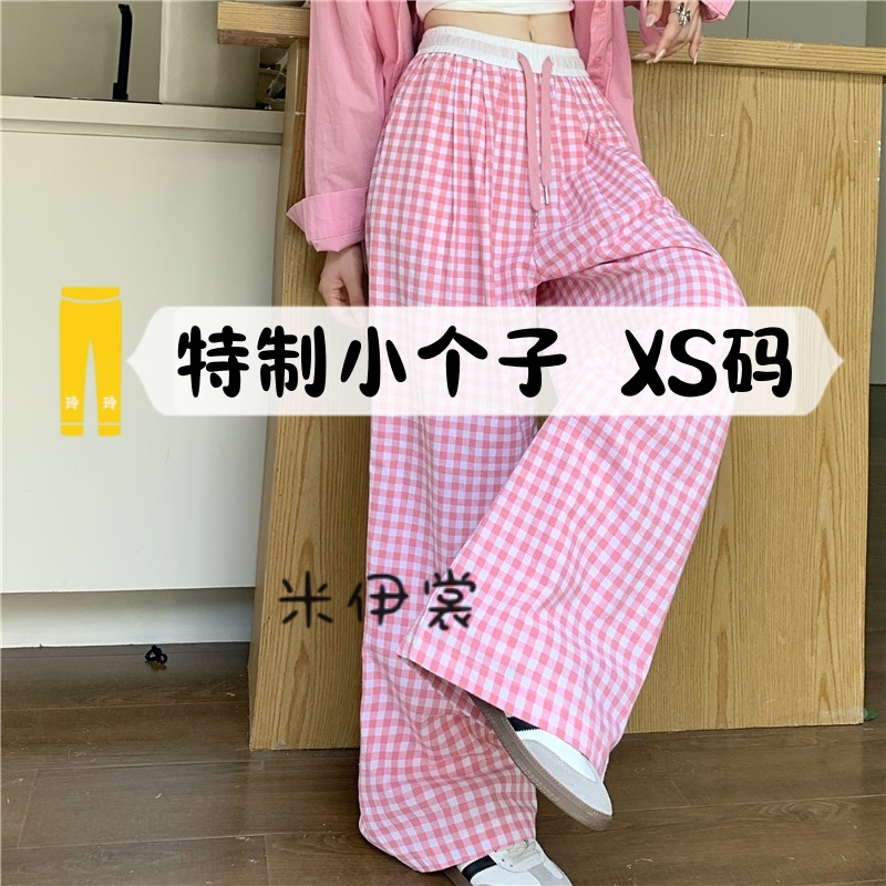 小个子145高腰格子黑白阔腿裤150休闲松紧复古宽松...