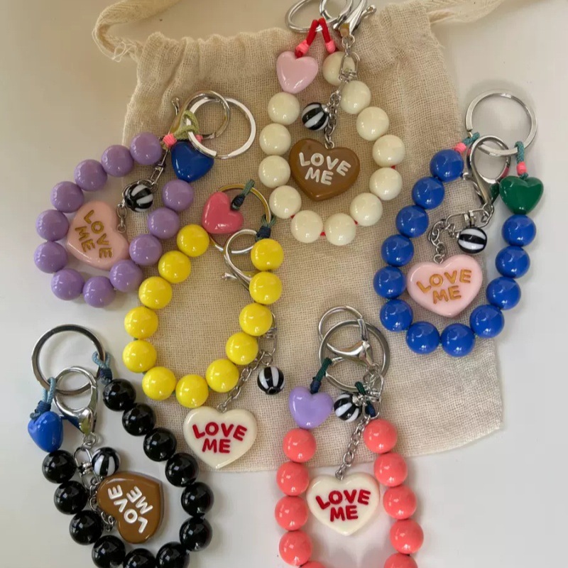 自制韩国ins博主同款钥匙扣糖果色手工串珠爱心手机...