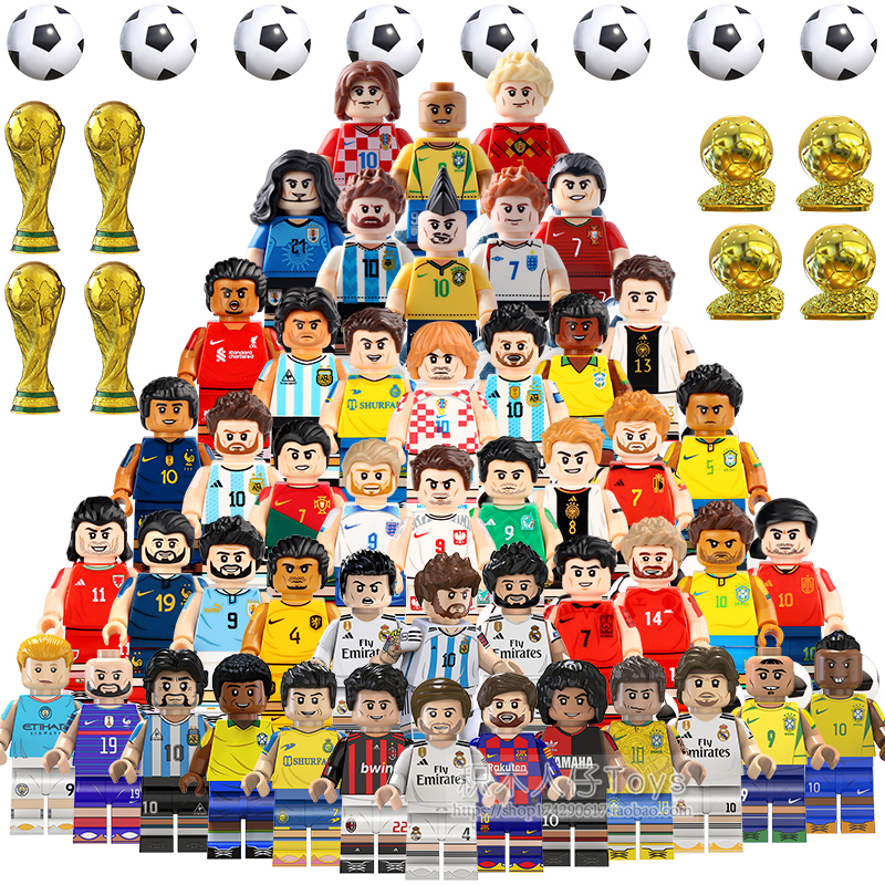 兼容国产积木人仔世界杯足球运动C罗梅西贝利儿童玩...