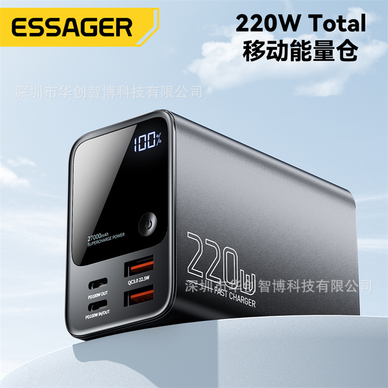 ESSAGER昊铂220W数显移动电源27000mAh大容量100W双...