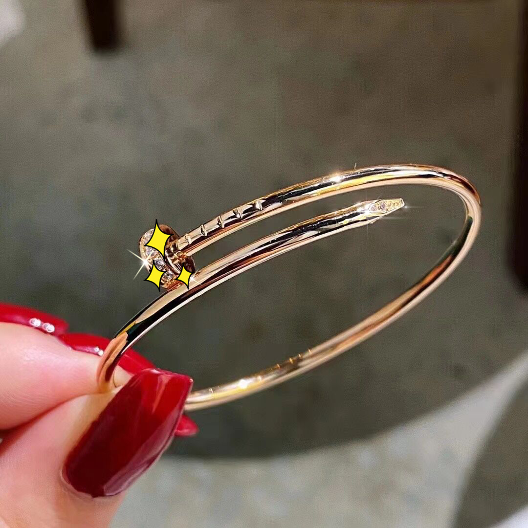 细版弹力粗钉子手镯男女厚镀18K玫瑰金半钻无钻小众...