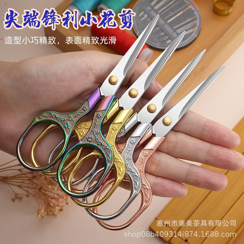跨境复古剪刀梅花纹柄小剪锌合金绣花雕花窗花剪学...