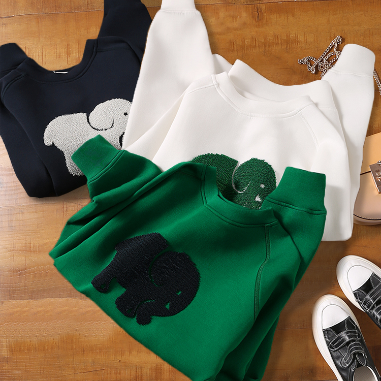 青春减龄3色!大象亮片图案轻柔空气棉触感插肩袖卫...