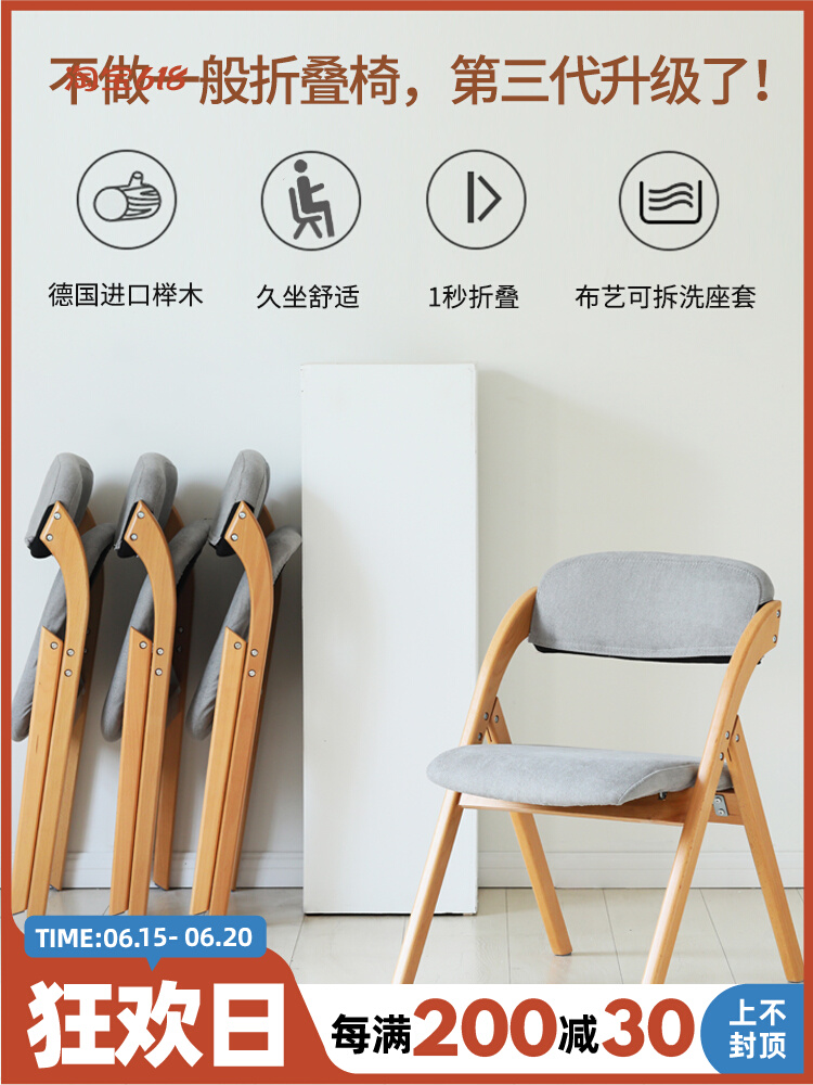 实木可折叠椅家用靠背椅子折叠餐椅办公凳子可叠放...