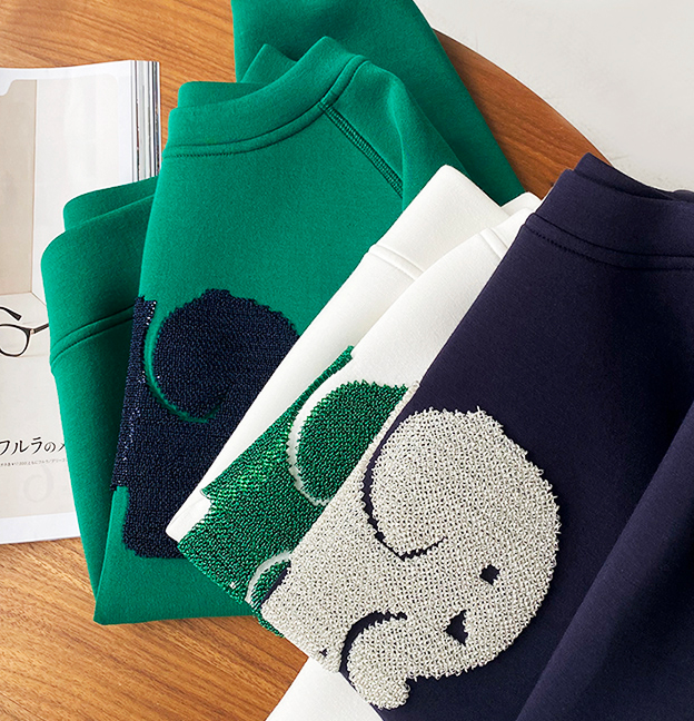 青春减龄3色!大象亮片图案轻柔空气棉触感插肩袖卫...