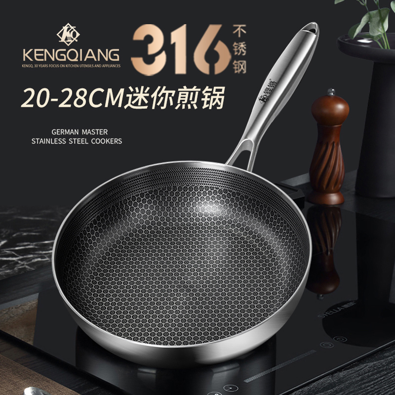 不锈钢平底锅不粘锅电磁炉食品级家用煎蛋烙饼牛排...