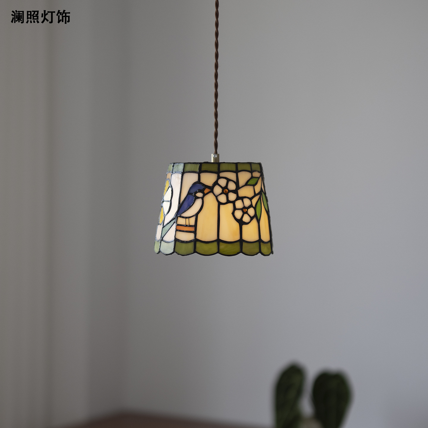复古黄铜玻璃小鸟吊灯日式侘寂创意床头玄关过道民...