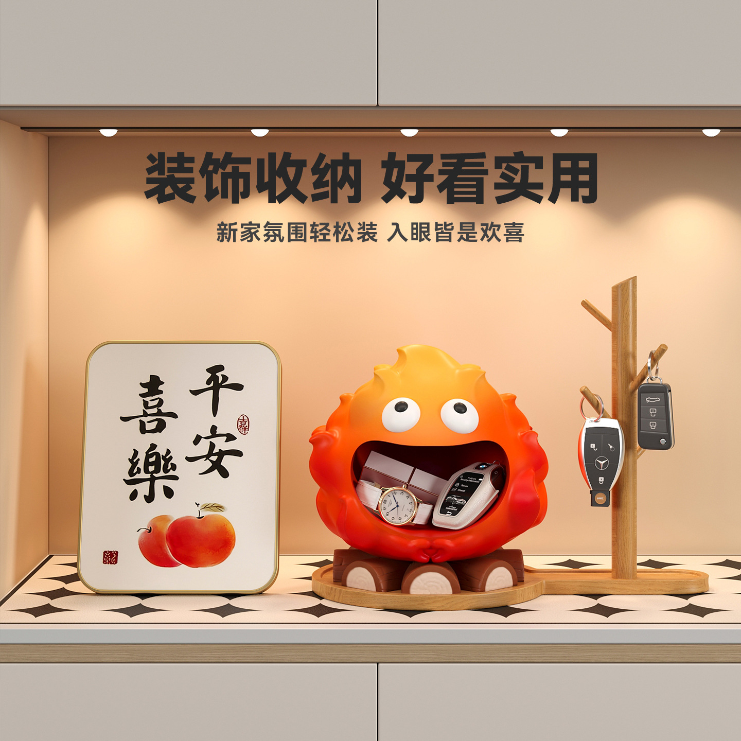 乔迁之喜柴火小炭火钥匙收纳玄关装饰摆件入户门新...
