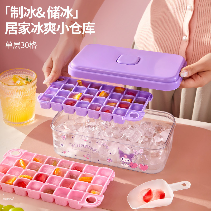 HelloKitty按压冰格冰块模具冷冻制冰神器带盖制冰...