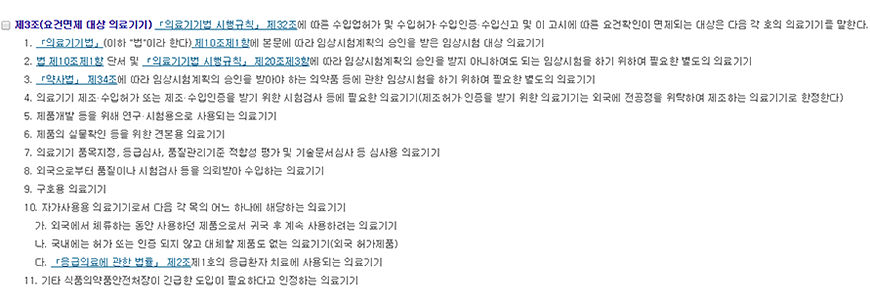 법령 변경으로 인해 자가소비용 목적의 수입 의료기기에 대해서도 요건 면제 승인을 받아야 통관 진행이 가능한 점 알려드립니다.